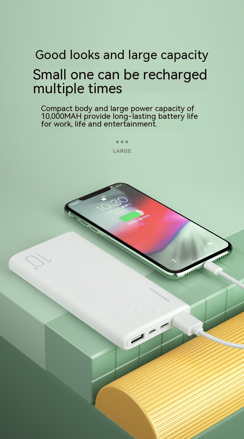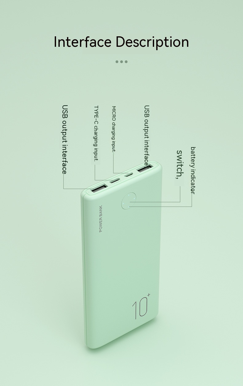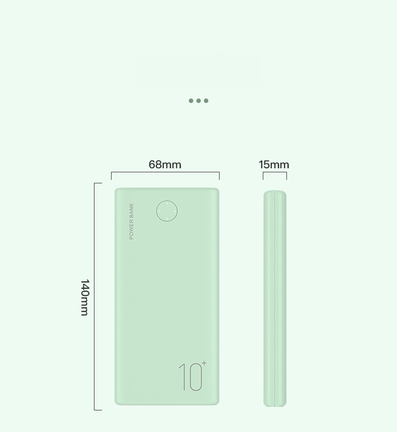 Product information: Input: MICRO/TYPE-C 5V- -2.1A Output: Dual USB- -5V-2.1A Battery capacity: Polymer 10000mAh Material: ABS pc fireproof material Size: L140mm x W68mm x H15mm